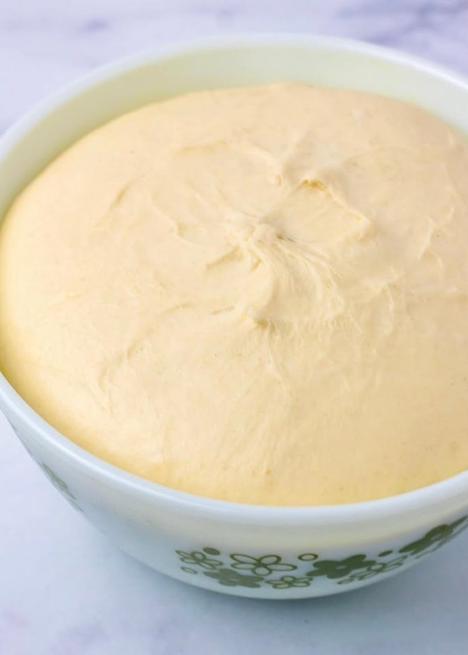 - Primeira fermentação: Cubra e deixe crescer até dobrar de tamanho (≈3 horas).